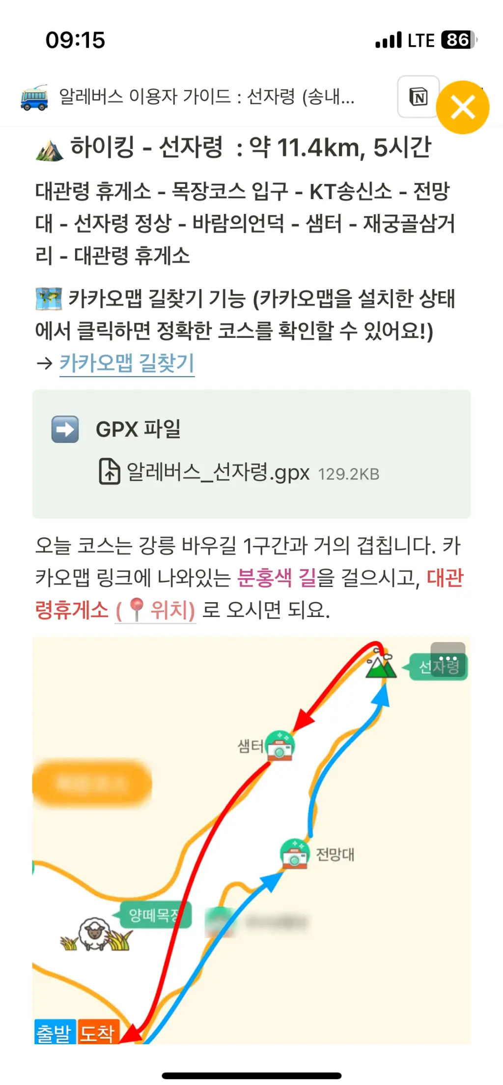 선자령 등산 코스는 알레 어플을 통해서도 확인할 수 있어요. 더욱이 알레에서는 미리 안내사항들을 자세히 카톡 메시지로 보내주기 때문에 이것만 잘 읽어도 도움이 많이 되어요.